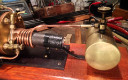 " The plant is capable of steaming a 2.5-4 launch. It consists of a standard B&L Meths burner (brass with copper tubing) and Centre Flue Boiler (25cm L x 8.5cm Diameter), boiler and stack are heavy grade Copper and all fittings and stack mount Brass. The engine is a Vertical, single open Cylinder, 1/2"" bore x 5/8"" stroke engine. Very robust and runs at very high RPMs comfortably. The engines dimensions are 6cm H x 5.5cm W with 3.5cm diameter Flywheel. "