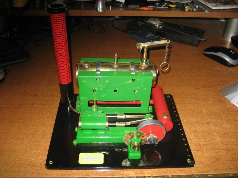 A fairly conventional single cylinder double acting slide valve stationary engine. This example has been restored and repainted in a rough approximation of the original colours.