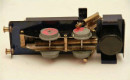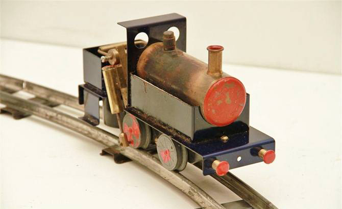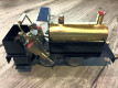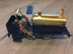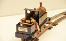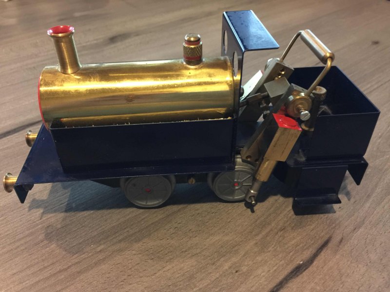 David Auld rear wheel cylinder locomotive that has not been fired. Have tried it on compressed air, all timing perfect. Quite strong power being a twin cylinder. Can reverse. Wheels are lead. One rear wheel has some cracking in it. Was hoping a reader may have access to replacement wheel or suggestions on how to repair. 1.3m Round track is currently being cleaned up. David Auld locomotives are 0 gauge and were made between 1966 to 1989. This one is of the later design being a square cylinder head. As I understand only 27 were made with a square cylinder head. Engine is just shy of 20cm long including front buffers and weighs in at 784 grams (1 Pound 12 Ounces) empty.