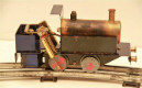 These photos are of a very rare engine and track made by David Auld. David Auld made 130 of these locos, plus 27 more slightly different. Also earlier there was a run of 20 of a different design. The track was made after Lawrence Lines stopped production, it is Lawrence track without the trademark. His 0 gauge steam loco production lasted about from 1966 until 1989, or so. The track make a circle 1.3 Metres wide. These rare pictures appeared on the Trademe NZ auction website.