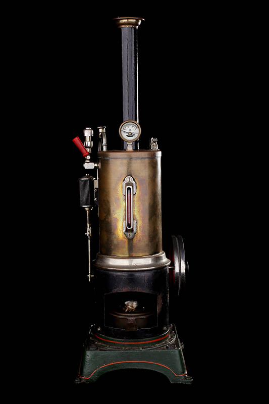 | Notes: | This is a basically original 1920?s Doll D.C. model 320/4, single cylinder, Vertical steam engine with weighted safety valve, boiler sight glass, pressure gauge, whistle and burner all on a cast iron base. The model number is helpefully stamped on the underside of the base. |