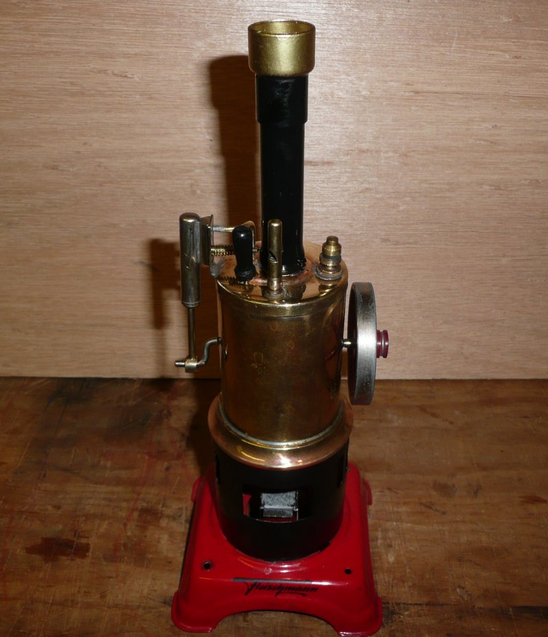 Made c1960, this is Fleischmanns version of Dolls original compact design of candlestick engine with a through-boiler crankshaft. My example has a replica chimney which is slightly taller than it would have been originally. The engine was provided with a small solid fuel burner tray, just about big enough fo one Esbit tablet! I fire it with a small spirit vapourising burner.
