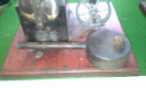 Here we have an early 1950s Jensen meths fired 75 steam engine. This engine is the only meths fired Jensen to be made. Distinguishable by the air vent holes in the firebox sides and no stack fitted to the rear. Engine unit was later used on the Jensen 70 models, has an electric model plate fitted but is stamped with the model designation 75. Meths burner is made of tin with a cork stopper, it is rare to find a Jensen 75 still with its burner.
