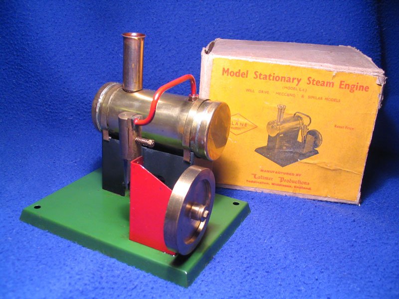 The Latimer L4 made by Plane products, Teddington around 1950 was the companys smallest engine, and features a safety valve built into the chimney. The engine is boxed and complete and is in playworn original condition.