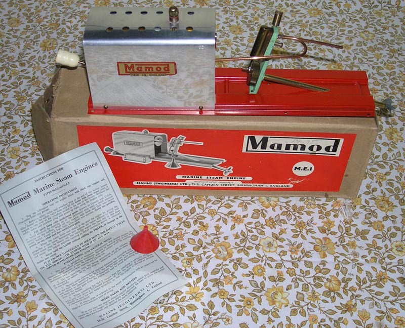 | Notes: | This enigine is original and complete, but requires attention in my workshop. It comes with its box, instructions, and advice tickets still attched. I first purchased one identical to this in 1966 and put in a purpose built wooden ship (tanker type) specially manufactured by a model company in conjunction with Mamod for this engine. It has a meths burner. |
