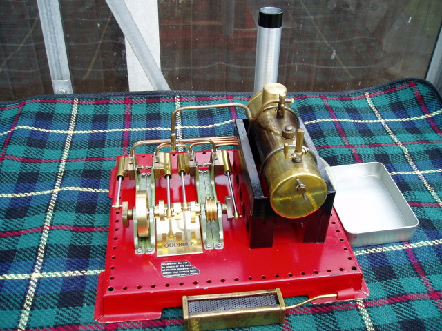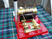 This is a modified SE3 to double the number of cylinders and is christened Quobble by its creator. It is self starting and is able to run from the steam of the standard boiler. See the build log