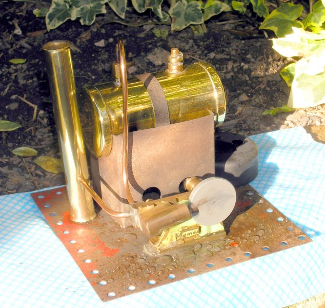 This engine was completely refurbished in March 2010 and is an example of a transitional stationary, because it sports both the old wick type lamp and base but coupled with a new 1958 firebox and boiler band. The SE1 was made in this style for probably no more than 6 months or so.