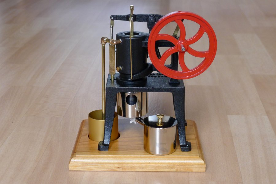 The Rider-Ericsson is the only hot air engine that was actually manufactured in production quantities. This is a water cooled engine with a working water pump just as in the original. A lovely cast metal engine.