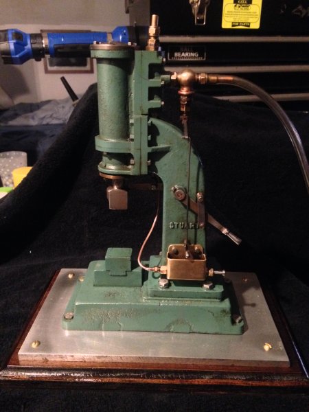 " This is my early 60s ST Hammer mounted on 1/4"" Aluminum plate and a wood plinth. I had to cut, route and stain the base to have a solid and presentable base for this powerful Hammer. Note the Manual pump oiler Reservoir and drain cock on opposite side of piece. "