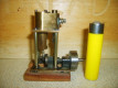 Cost new in the 1930s - 18s 6d size - Height 3 3/4 inches length 2 3/4 inches width 1 7/8 inches Bore 7/16 inch Stroke 7/16.