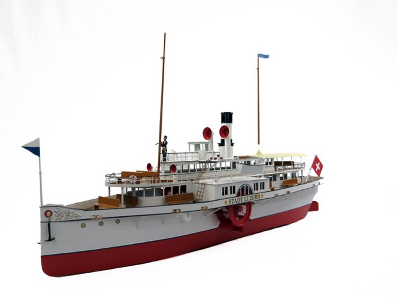 The Stadt Luzern was produced in 2013 by Bernhard Tucher in his home-based shop. It is approximately 3 ft long and is powered by a Wilesco D52 steam engine.
