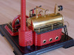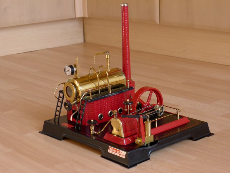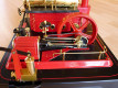 This is a large engine the base measures 300mm x 350mm. This model has a water injection hand pump, so in theory you can run the engine indefinitely. Water is pumped from a reservoir underneath. The exhaust steam is fed to the chimney and the condensed water collected at the base. It is equipped with a working steam pressure gauge, drain valve and steam regulator valve. The engine runs nicely at low revs.