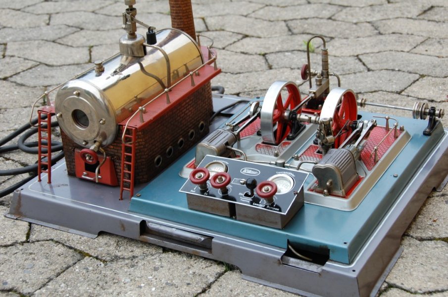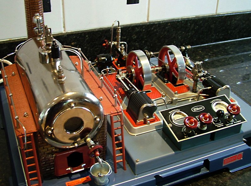 | Notes: | The largest model ever produced, often refered to as the holy grail of all Wilesco models, only produced between 1965 to 1980. Compete with clutch transmission, waterpump and reserve tank. Hard to come by especially the early models with the blue cylinders. |