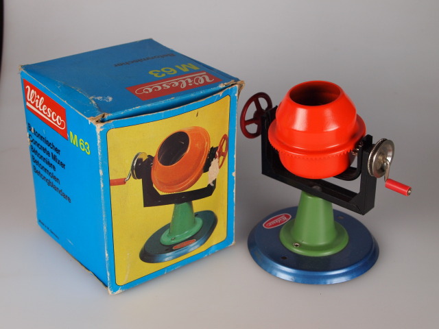 An older concrete mixer. later units have a simpler. less bright colour scheme.